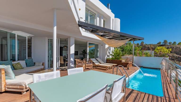 Die Villa verfügt über Klimaanlage, 3 Schlafzimmer, ein Wohnzimmer und eine voll ausgestattete Küche mit Kühlschrank und Kaffeemaschine. Es gibt 4 Badezimmer, die jeweils mit einem Bidet und einer Dusche ausgestattet sind. Handtücher und Bettwäsche werden bereitgestellt.