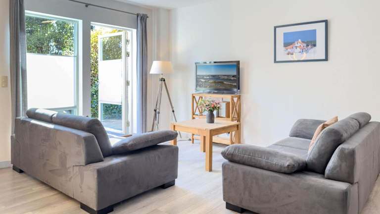 Das Ferienhaus verfügt über zwei Schlafzimmer, eine Küchenzeile mit Kühlschrank und Geschirrspüler sowie zwei Badezimmer mit Dusche.