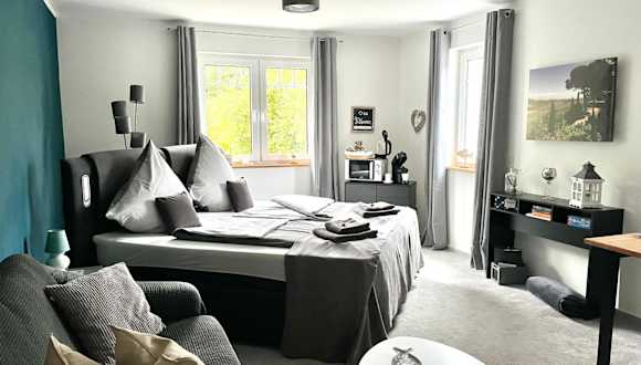 Das Alternative zum Hotel Zimmer im Einfamilienhaus-eigenes Badezimmer im Flur ist eine gemütliche und komfortable Unterkunft, die Ihnen einen entspannten Aufenthalt in einer ruhigen Umgebung bietet. Mit einem schönen Gartenblick und kostenfreiem WLAN können Sie hier Ihre Privatsphäre genießen. Die Unterkunft bietet auch Zugang zu Tischtennis und kostenfreien Privatparkplätzen.