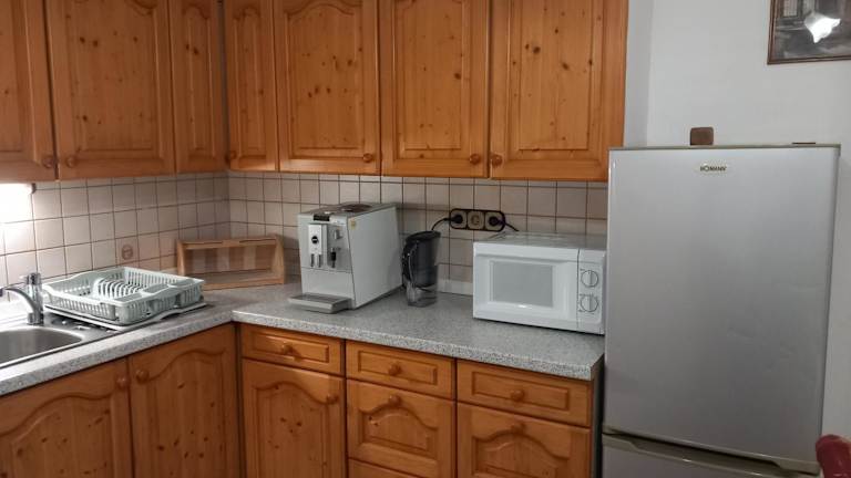 Es steht eine Gemeinschaftsküche zur Verfügung, in der die Gäste ihre Mahlzeiten zubereiten können. Das Ferienhaus bietet zudem einen Minimarkt vor Ort für die grundlegenden Bedürfnisse.