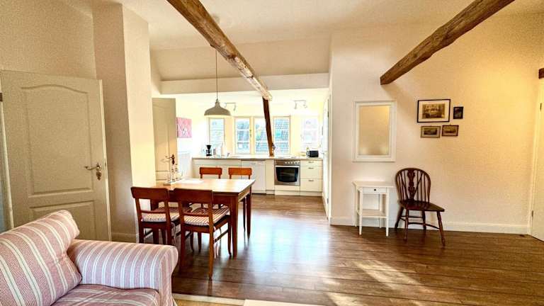 Das Apartment im Alten Standesamt Große Wohnung ist komfortabel und gemütlich eingerichtet. Es verfügt über einen TV und eine gut ausgestattete Küchenzeile mit Kühlschrank, Geschirrspüler, Backofen, Kaffeemaschine und Wasserkocher. Das kostenfreie WLAN ermöglicht es Ihnen, mit Ihren Lieben in Kontakt zu bleiben oder Ihre Urlaubsfotos zu teilen.