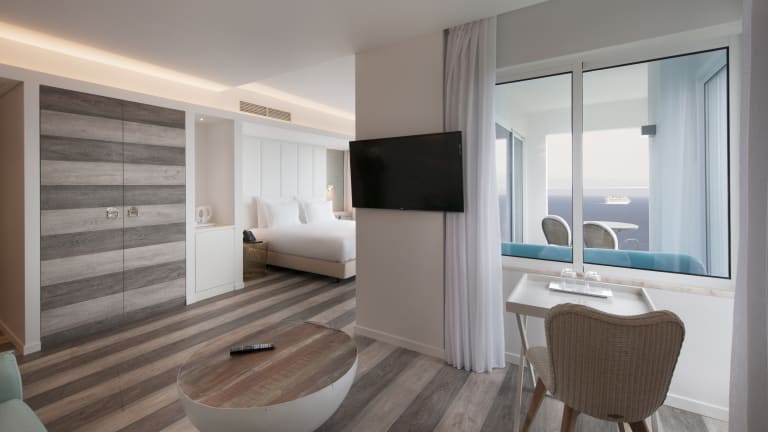 Mit insgesamt 106 Standard Zimmern, 69 Standard Zimmer in der oberen Etagen, 41 Premium Deluxe, 68 Studios, 21 Apartments und 10 Suiten bietet das Hotel auf einer Wohnfläche zwischen 28 und 60 qm grosszügige, elegante Unterkünfte mit eigenen Balkonen mit Blick auf das Meer, die Ihnen alle maximalen Komfort bieten.