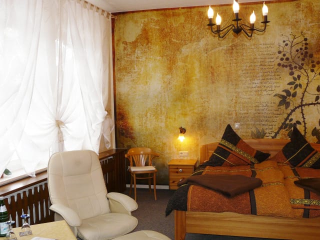 Die Altstadt Pension Orchidee befindet sich inmitten der historischen Altstadt von Wernigerode. In nur 10 Gehminuten erreichen Sie das Rathaus und können die Schönheit der Altstadt erkunden. Die Pension ist auch ein idealer Ausgangspunkt für Aktivitäten im Naturpark Harz, wie zum Beispiel Wanderungen oder Radtouren. Das Schloss Wernigerode liegt nur 25 Gehminuten entfernt und ist definitiv einen Besuch wert. Der Bahnhof Wernigerode ist weniger als 10 Minuten zu Fuß von der Pension entfernt.