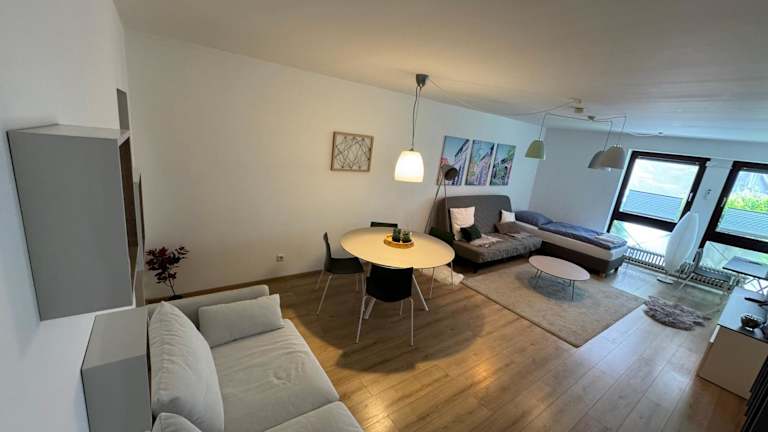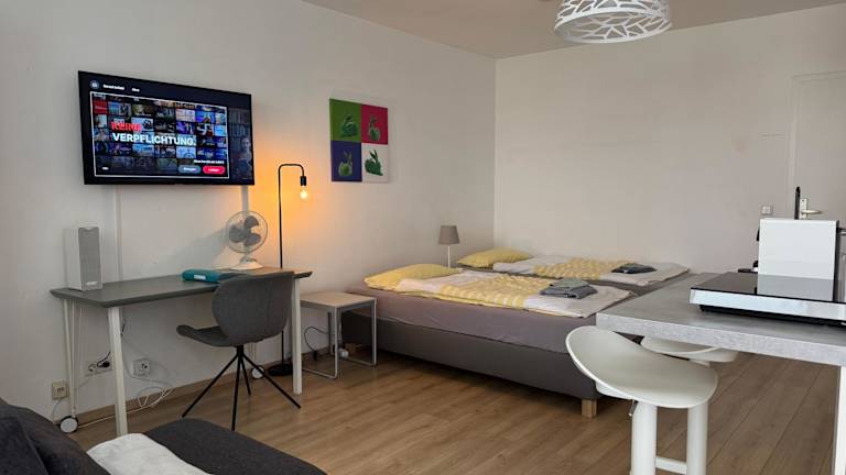 Die Ferienwohnung verfügt über 1 Schlafzimmer und 1 Badezimmer. Zur Ausstattung gehören Bettwäsche, Handtücher, ein Flachbild-TV, ein Essbereich, eine voll ausgestattete Küche sowie ein Balkon mit Blick auf die Stadt.