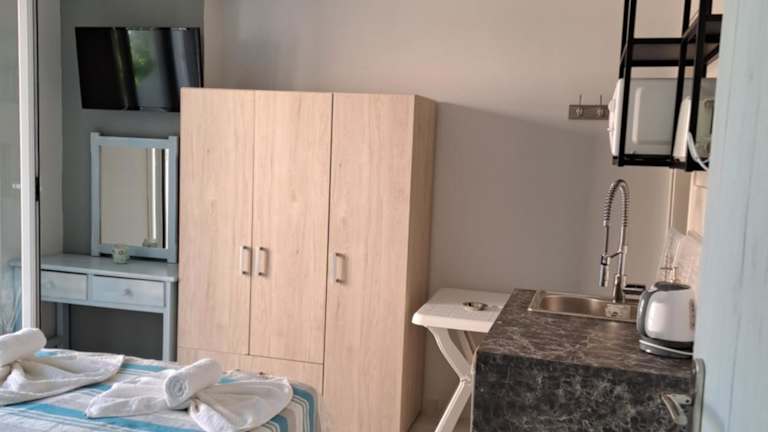 Die klimatisierten Zimmer sind mit einem Flachbild-TV, einem Schreibtisch und einer voll ausgestatteten Küche ausgestattet. Jedes Zimmer verfügt über ein eigenes Badezimmer mit einer Dusche und einem Haartrockner. Die Studios bieten zudem eine Terrasse mit Blick auf die Stadt.