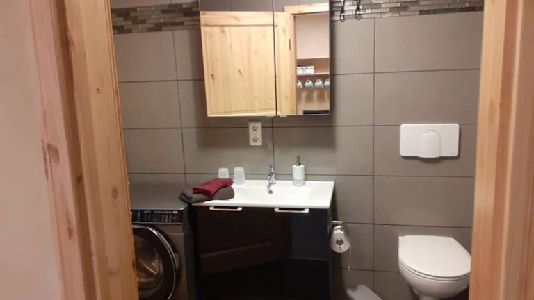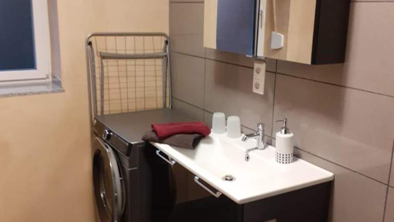 Die Ferienwohnung verfügt über ein Schlafzimmer, ein Wohnzimmer sowie eine vollständig ausgestattete Küche mit Kühlschrank und Kaffeemaschine. Ein Badezimmer mit Dusche und kostenlosen Pflegeprodukten ist ebenfalls vorhanden. Handtücher und Bettwäsche werden bereitgestellt.