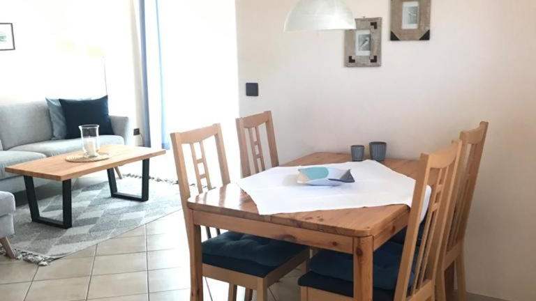 Die Ferienwohnung bietet Platz für bis zu vier Personen und umfasst zwei Schlafzimmer, ein Wohnzimmer mit TV (Kabelkanäle), eine voll ausgestattete Küchenzeile mit Kühlschrank und Mikrowelle sowie ein Badezimmer.