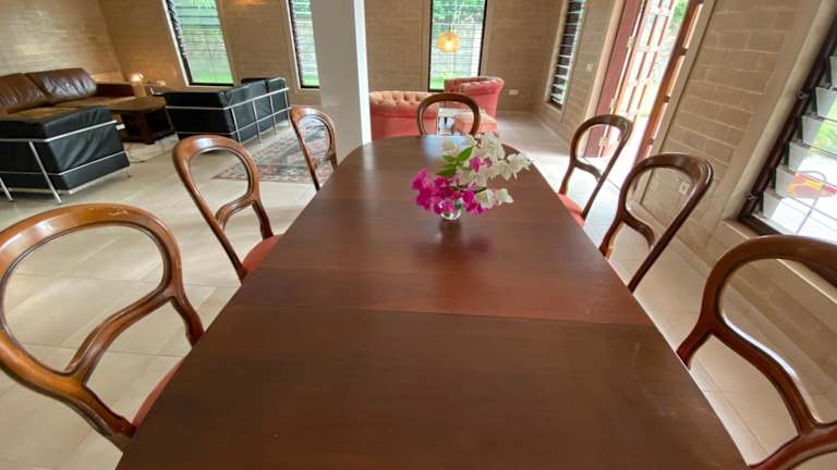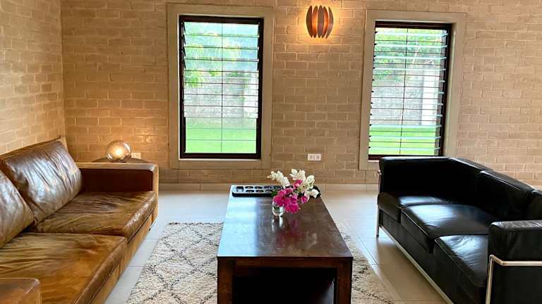 Das Ferienhaus im Ama Batokunku Resort verfügt über 3 Schlafzimmer und 2 Badezimmer. Die Zimmer sind gemütlich eingerichtet und bieten einen Blick auf den Garten. Zur Ausstattung gehören auch eine voll ausgestattete Küche, ein Essbereich und eine Terrasse mit Seeblick. Bettwäsche und Handtücher werden gestellt und ein Flachbild-Sat-TV sorgt für Unterhaltung.