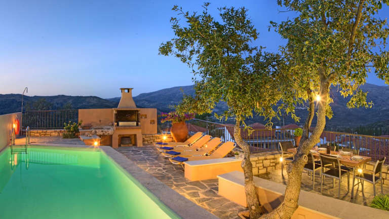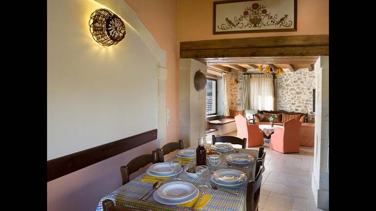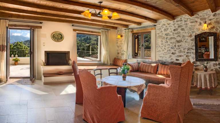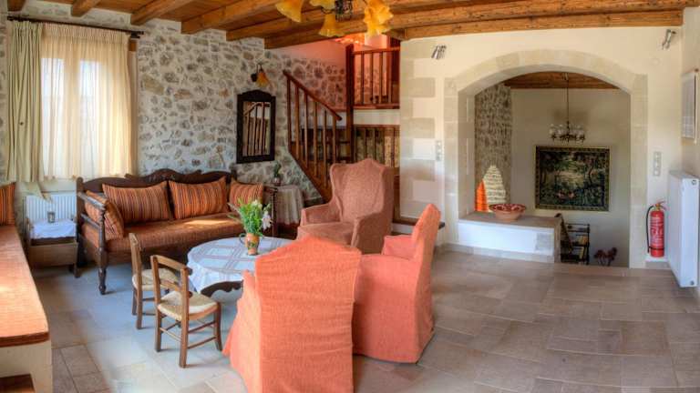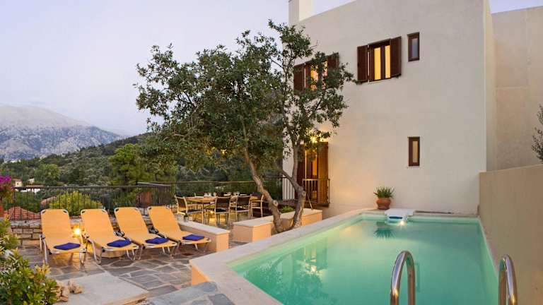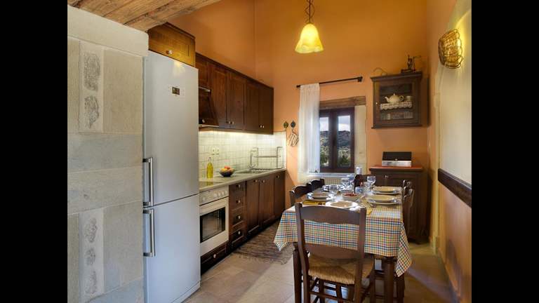 Die Steinvillen im Amari sind traditionell eingerichtet und bieten geräumige Terrassen mit herrlichem Ausblick. Jede Villa verfügt über Holzbalkendecken, Fliesenböden und dunkle Holzmöbel. Mit drei separaten Schlafzimmern, einer voll ausgestatteten Küche, einem Essbereich und zwei Bädern bieten die Villen ausreichend Platz für Familien oder Gruppen. Zur Ausstattung gehören Klimaanlage, Kühlschrank, Backofen und ein Flachbild-TV mit CD-/DVD-Player. Eine der Villen verfügt über einen eigenen Pool und eine Sonnenterrasse mit Liegestühlen und Grillmöglichkeiten.