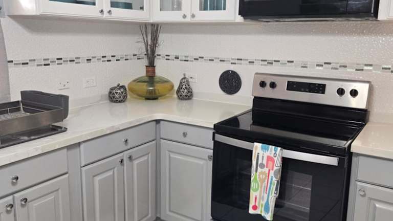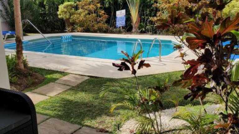 Die Ferienwohnung ist ausgestattet mit 2 Schlafzimmern, 2 Badezimmern, Bettwäsche, Handtüchern, einem Flachbild-TV mit Satellitenkanälen, einem Essbereich, einer voll ausgestatteten Küche und einer Terrasse mit Blick auf den Pool.