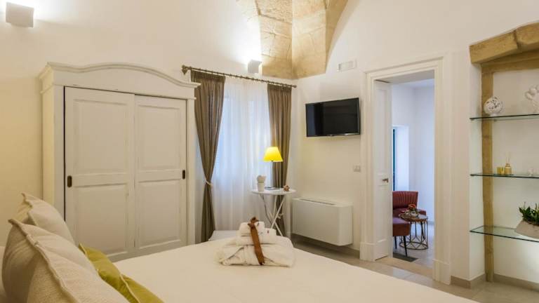 Das Hotel Amatè Suite in Lecce bietet eine attraktive Lage in der Nähe von Sehenswürdigkeiten wie dem Platz Sant' Oronzo und der Kathedrale von Lecce. Die Zimmer sind komfortabel eingerichtet und verfügen über Annehmlichkeiten wie Klimaanlage, Flachbild-TV und Kühlschrank. Jeden Morgen können Sie ein köstliches kontinentales, englisches/irisches oder italienisches Frühstück genießen. Das Hotel bietet auch einen Fahrradverleih für Erkundungstouren in der Umgebung an. Der Bahnhof Lecce ist nur 1,5 km entfernt und der Flughafen Brindisi erreichen Sie nach 40 km.