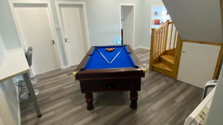 Das Ferienhaus verfügt über 5 komfortable Schlafzimmer, die Platz für Ihre gesamte Familie oder Gruppe bieten. Das Wohnzimmer ist geräumig und gemütlich eingerichtet, perfekt zum Entspannen nach einem langen Tag voller Aktivitäten. Der Flachbild-Kabel-TV sorgt für Unterhaltung und die voll ausgestattete Küche ermöglicht es Ihnen, Ihre eigenen Mahlzeiten zuzubereiten. Die 3 Badezimmer sind modern und verfügen über Duschen und einen Whirlpool, in dem Sie sich entspannen können. Handtücher und Bettwäsche werden gestellt, um Ihnen einen komfortablen Aufenthalt zu ermöglichen.