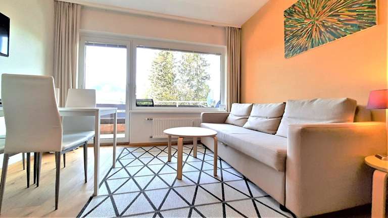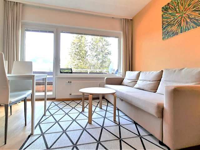 Die Ferienwohnung verfügt über 1 Schlafzimmer und 1 Badezimmer. Zur Ausstattung gehören Bettwäsche, Handtücher, ein Flachbild-TV mit Satellitenkanälen, ein Essbereich, eine voll ausgestattete Küche sowie ein Balkon, der einen Blick auf die Berge bietet.