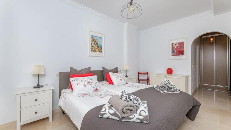 Die Ferienwohnung verfügt über klimatisierte Räumlichkeiten, darunter 2 Schlafzimmer, ein Wohnzimmer und eine voll ausgestattete Küche mit Kühlschrank und Kaffeemaschine. Außerdem sind 2 Badezimmer mit Dusche und kostenlosen Pflegeprodukten vorhanden. Handtücher und Bettwäsche werden bereitgestellt. Es sind schallisolierte Zimmer vorhanden.