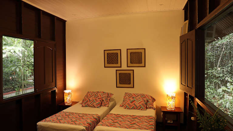 Die Bungalows im Hotel Amazon Ecopark Jungle Lodge sind komfortabel und schlicht eingerichtet. Jedes der klimatisierten Apartments verfügt über einen Balkon, eine elektrisch beheizte Dusche und gesicherte Fenster. Die Zimmer bieten Ihnen somit den notwendigen Komfort für einen angenehmen Aufenthalt inmitten der Natur.