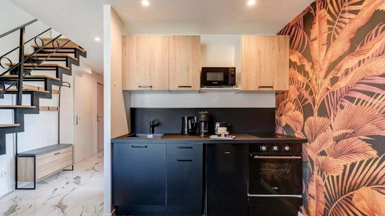 Amazone Prestige - Lyon Est ist eine klimatisierte Ferienwohnung, die aus einem Schlafzimmer, einem Wohnzimmer und einer voll ausgestatteten Küche besteht. Die Unterkunft bietet ein modernes Ambiente und eine hochwertige Ausstattung für einen angenehmen Aufenthalt. Zu den Annehmlichkeiten gehören kostenloses WLAN sowie ein Privatparkplatz, der den Gästen zur Verfügung steht. Es gelten Richtlinien zur Sicherheit und Hygiene, einschließlich der regelmäßigen Reinigung durch professionelle Reinigungsfirmen.
