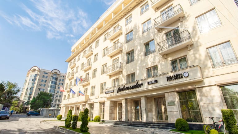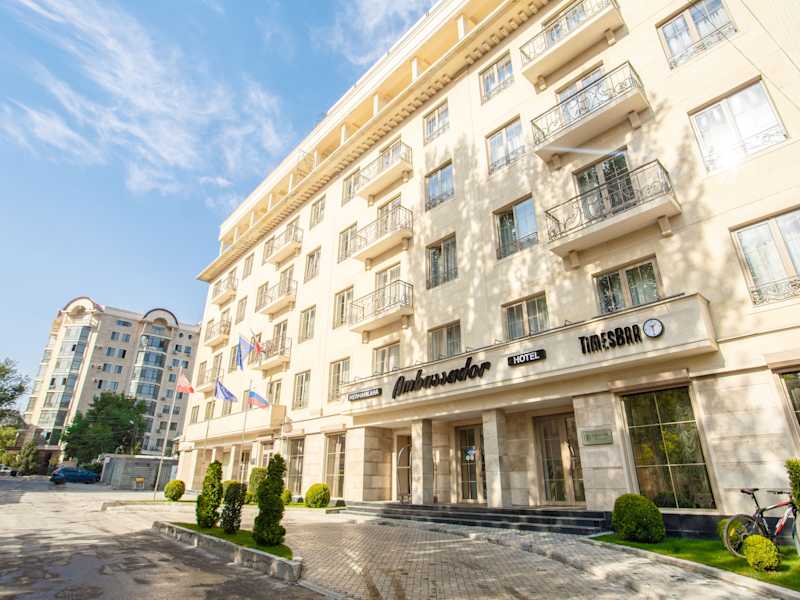 Das Ambassador Hotel in Bischkek bietet eine günstige Lage und komfortable Zimmer für einen angenehmen Aufenthalt in der Stadt. Das Hotel verfügt über ein Restaurant und kostenloses WLAN. Die Zimmer sind klimatisiert und mit TV und Minibar ausgestattet. Das Hotel bietet zudem eine 24-Stunden-Rezeption und kostenfreie Parkplätze.