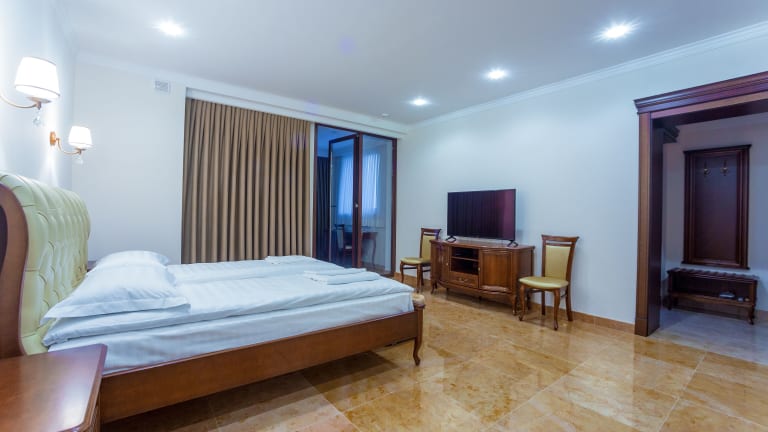 Das Ambassador Hotel ist ein modernes Hotel in Chişinău mit klimatisierten Zimmern, die kostenloses WLAN und ein eigenes Badezimmer bieten. Das Hotel verfügt über eine Bar und bietet seinen Gästen einen kostenlosen Privatparkplatz sowie die Möglichkeit zur Anmietung von Fahrzeugen, um die Umgebung zu erkunden.