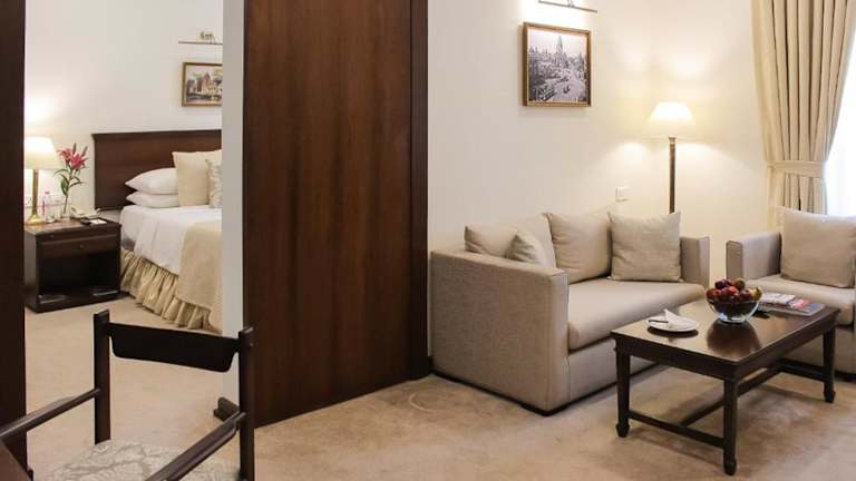 Das Hotel bietet 88 Zimmer auf 4 Etagen, die mit einem Aufzug erreichbar sind. Die Zimmer sind sorgfältig gestaltet und bieten Annehmlichkeiten wie Klimaanlage, Ventilator, Safe, Minibar, Schreibtisch, Kühlschrank, Tee- und Kaffeekocher sowie WLAN. Ein Zustellbett kann gegen Gebühr zur Verfügung gestellt werden. Die Badezimmer sind mit Dusche oder Badewanne, Haartrockner und Bademänteln ausgestattet. Es stehen Nichtraucher- und Raucherzimmer zur Auswahl.