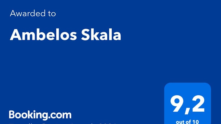 Ambelos Skala ist eine Unterkunft, die Gästen Übernachtungsmöglichkeiten in einem Ferienhaus mit Garten und Terrasse bietet. Das Haus verfügt über kostenloses WLAN und einen Balkon mit Meerblick.