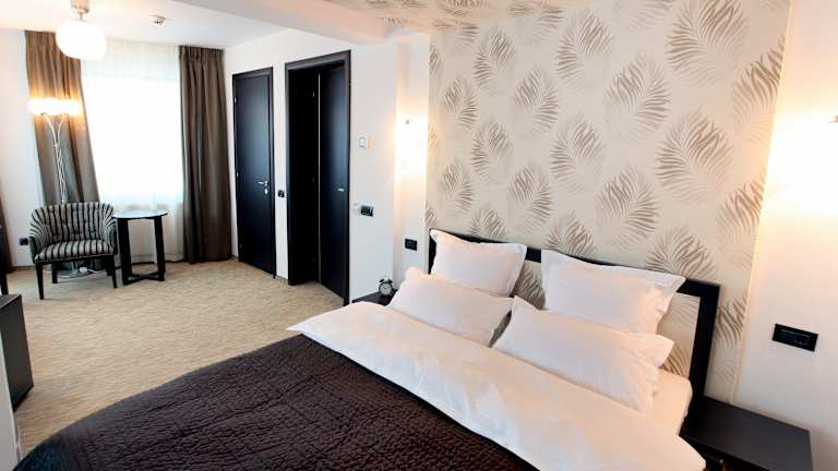 Das Ambiance Hotel in Bukarest bietet eine ideale Lage direkt am Ufer der Dâmbovița. Das Hotel verfügt über klimatisierte Zimmer mit kostenfreiem WLAN und bietet seinen Gästen ein Restaurant, eine Bar und eine Terrasse. Die modernen Zimmer sind mit einem Flachbild-TV, einer Minibar und einem Badezimmer mit Dusche, kostenlosen Pflegeprodukten und Haartrockner ausgestattet. Einige Zimmer verfügen zudem über eine Sitzecke. Das freundliche Personal an der rund um die Uhr geöffneten Rezeption steht Ihnen gerne zur Verfügung. Jeden Morgen wird ein leckeres Frühstücksbuffet serviert und auf Wunsch können Sie das Frühstück auch auf Ihrem Zimmer genießen. Kostenlose Privatparkplätze stehen am Hotel zur Verfügung und ein Shuttleservice kann auf Anfrage arrangiert werden. In der Umgebung finden Sie Restaurants und Bars, und der U-Bahnhof Grozăvești ist nur 5 Gehminuten entfernt. Sehenswürdigkeiten wie der Platz Piața Unirii und der See Morii befinden sich in einer Entfernung von 5 km bzw. 1,7 km. Das Hotel liegt außerdem in der Nähe des Businessparks Sema und ist etwa 20 km vom Flughafen Bukarest entfernt.