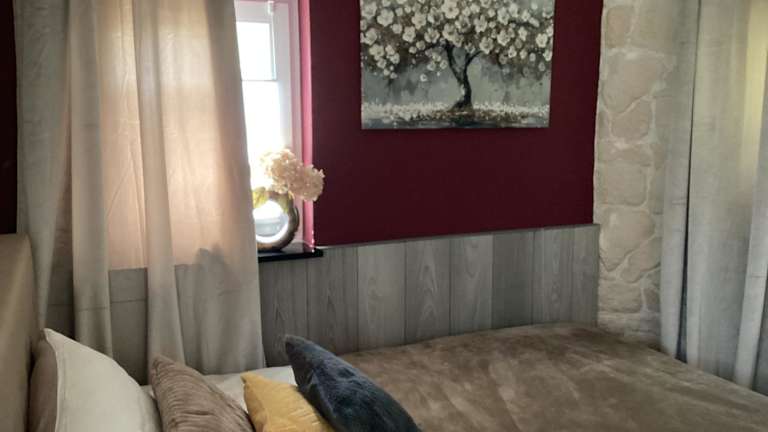 Die Ferienwohnung umfasst ein Schlafzimmer und ein Badezimmer. Sie ist ausgestattet mit Bettwäsche, Handtüchern, einem Flachbild-TV mit Satellitenkanälen, einem Essbereich sowie einer voll ausgestatteten Küchenzeile.
