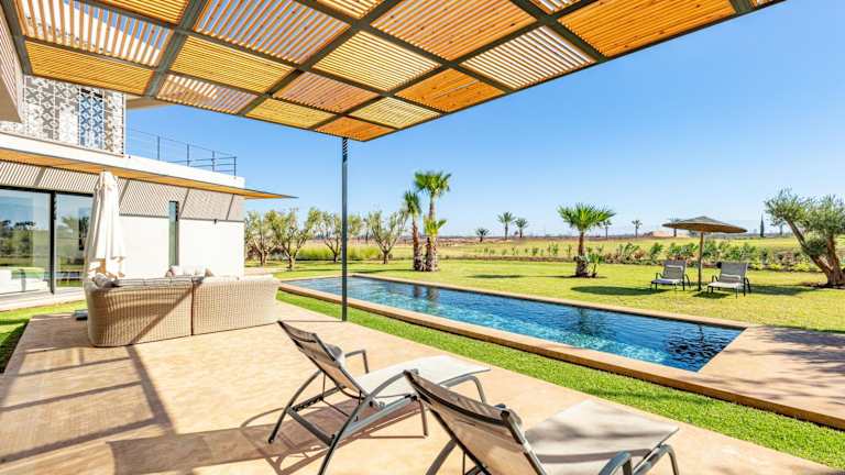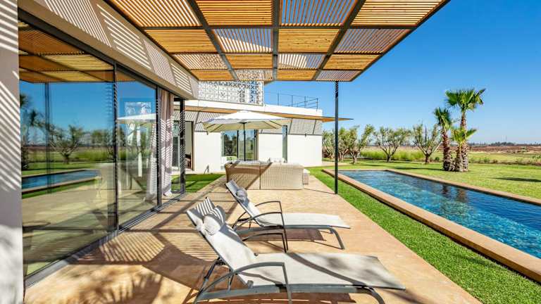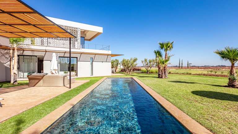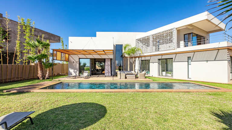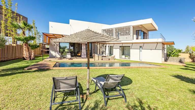 Amelkis, villa luxe front golf bietet Übernachtungsmöglichkeiten mit kostenlosem WLAN, Klimaanlage, einem Außenpool und einer Terrasse. Zur Ausstattung gehört ein eigener Pool sowie ein Garten. Kostenlose Privatparkplätze sind ebenfalls vorhanden. Die Unterkunft ist eine Villa mit einem großzügigen Raumangebot.