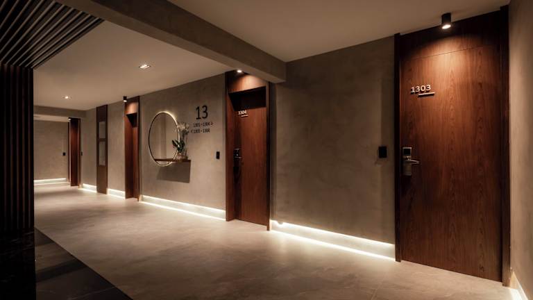 Das Hotel bietet 78 Zimmer, darunter 7 Junior-Suiten, 17 Suiten und 54 Doppelzimmer, die auf 15 Etagen verteilt sind. Die Zimmer sind hell und geräumig, mit regionalen Gemälden und Kunstwerken dekoriert. Zur Ausstattung gehören Klimaanlage, Kabel-TV und eine gut bestückte Minibar. Die Suiten verfügen zusätzlich über eine eigene Sauna und einen Whirlpool.