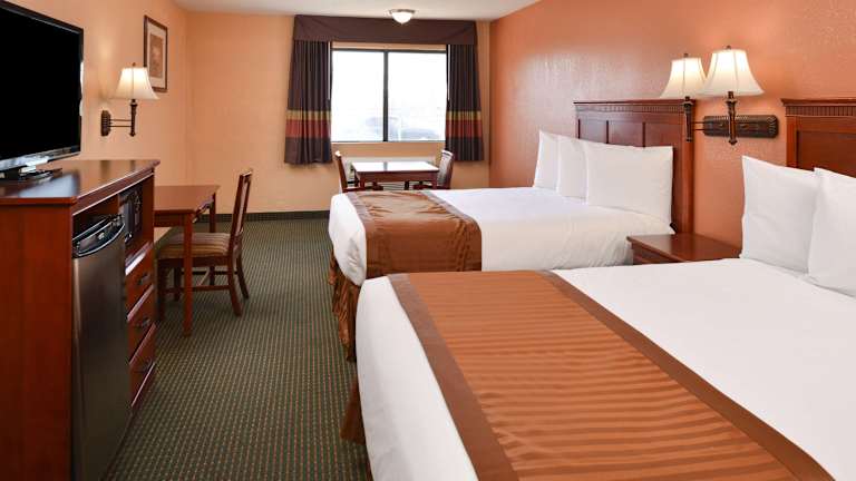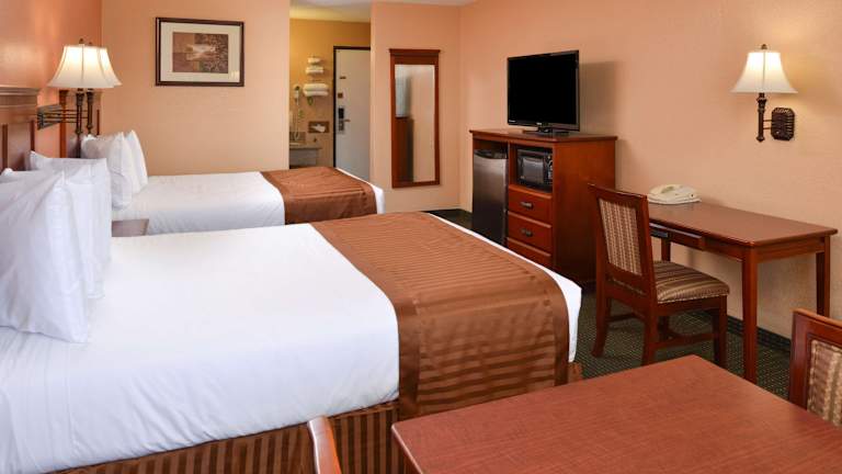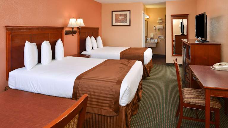 Die Zimmer im Americas Best Value Inn & Suites-East Bakersfield sind traditionell eingerichtet und verfügen über Kabel-TV mit HBO. Zur Ausstattung gehören auch ein Schreibtisch, eine Mikrowelle und ein Kühlschrank. Einige Zimmer haben auch einen Balkon, auf dem Sie entspannen können. Es gibt auch rollstuhlgerechte Zimmer und Familienzimmer für Gäste, die mit Kindern reisen.