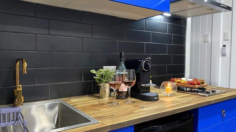Die Lodge bietet ein Schlafzimmer mit Zugang zu einer Dusche, kostenlosen Pflegeprodukten und einem Haartrockner. Die Ausstattung umfasst ebenfalls eine Kaffeemaschine.