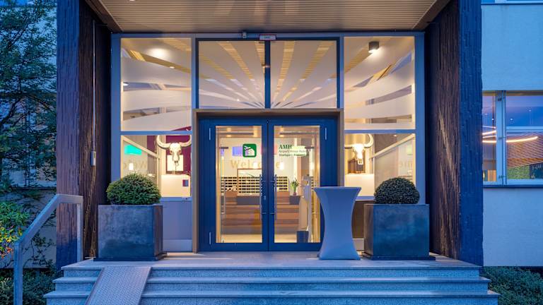 Das AMH Airport-Messe-Hotel Stuttgart liegt in Sielmingen, nur 10 Autominuten vom Stuttgarter Flughafen und der Messe Stuttgart entfernt. Die Lage des Hotels ist ideal für Geschäftsreisende und Urlauber, die die Messe besuchen oder einen Flug nehmen möchten. Die Autobahnanbindung ist ebenfalls gut, so dass Sie schnell in die Innenstadt von Stuttgart gelangen können.