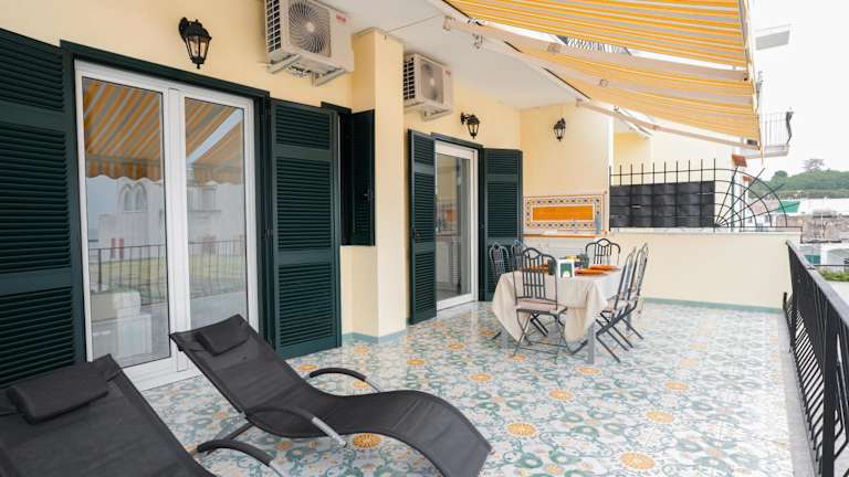 Die Unterkunft befindet sich in unmittelbarer Nähe des Strandes Spiaggia di San Pietro, etwa 70 Meter entfernt. In der Umgebung befinden sich weitere interessante Strände wie Spiaggia dei Pescatori und Spiaggia degli Inglesi sowie der Hafen von Ischia. Der Flughafen Neapel liegt 44 Kilometer entfernt.
