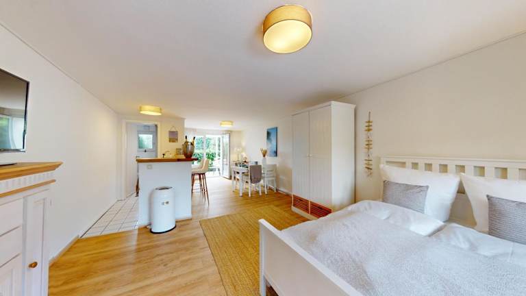 Amselweg - Sandkorn ist eine Ferienwohnung im Erdgeschoss mit einer Terrasse, die einen schönen Gartenblick bietet. Die Unterkunft ist für Nichtraucher konzipiert, und es stehen allergikerfreundliche Zimmer zur Verfügung. Die Unterkunft ist darauf ausgelegt, keine Feierlichkeiten wie Junggesellenabschiede zu veranstalten, und der Check-in ist nur für Gäste ab 18 Jahren erlaubt. Haustiere sind in der Anlage gestattet. Die Kommunikation erfolgt in Deutsch und Englisch.