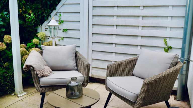 Die Unterkunft bietet ein Schlafzimmer, einen Fernseher sowie eine voll ausgestattete Küche. Zusätzlich gibt es eine Terrasse mit Gartenmöbeln, die den Gästen einen komfortablen Platz im Freien bietet.