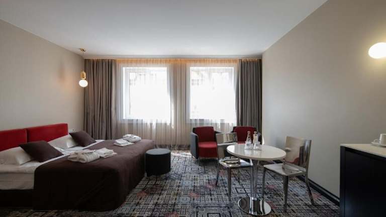 Das Amsterdam Plaza Hotel & SPA in Palanga bietet seinen Gästen eine komfortable Unterkunft mit einer Vielzahl von Annehmlichkeiten. Hier können Sie sich auf ein hervorragendes Restaurant, kostenloses WLAN und einen kostenlosen Privatparkplatz freuen. Der Wellnessbereich mit Whirlpool, Sauna und Dampfbad lädt zum Entspannen ein, während das Fitnessstudio die Möglichkeit bietet, fit zu bleiben. Die Zimmer sind modern und gut ausgestattet, und das freundliche Personal steht Ihnen rund um die Uhr zur Verfügung. Die Lage des Hotels ist ideal, um die Sehenswürdigkeiten und Attraktionen von Palanga zu erkunden.