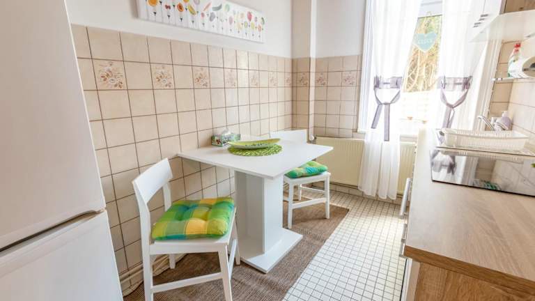 Die Ferienwohnung besteht aus einem Schlafzimmer und einem Wohnzimmer. Sie verfügt über eine voll ausgestattete Küche mit Kühlschrank und Kaffeemaschine sowie ein Badezimmer mit Dusche und Haartrockner. Handtücher und Bettwäsche werden bereitgestellt. Die Unterkunft bietet schallisolierte Zimmer und ist insgesamt rauchfrei.