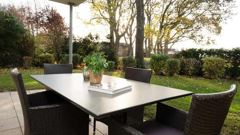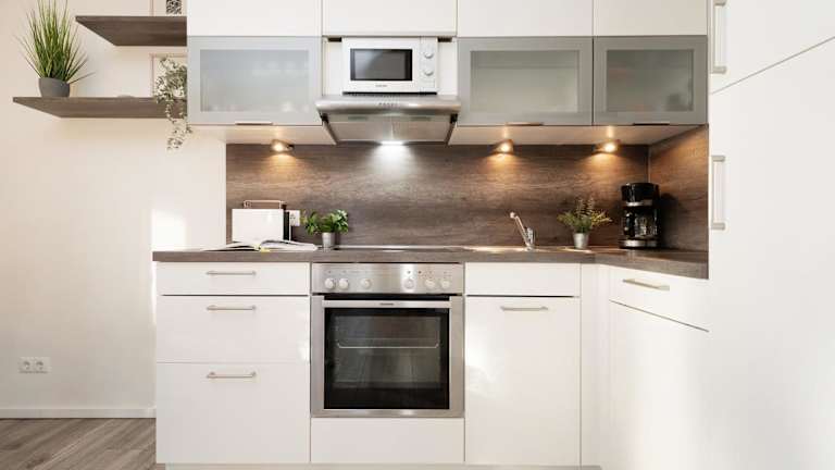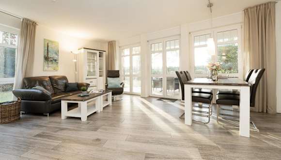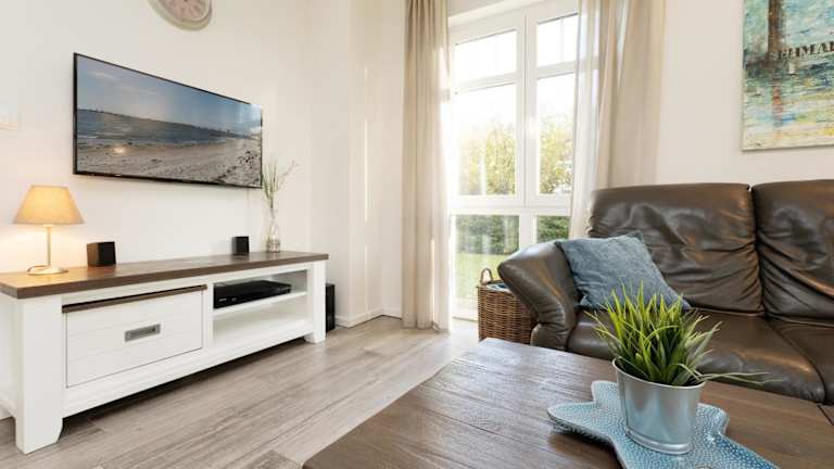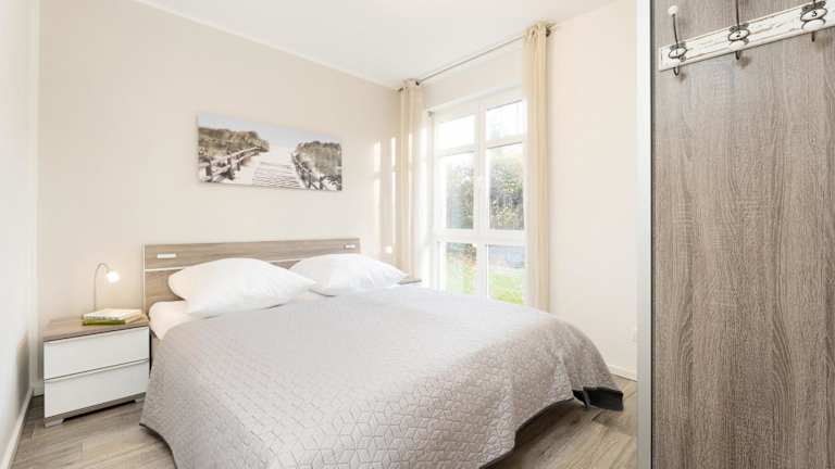 Die Ferienwohnung befindet sich im Erdgeschoss und verfügt über 2 Schlafzimmer. Die Ausstattung umfasst einen TV sowie eine voll ausgestattete Küche mit Kühlschrank und Geschirrspüler.