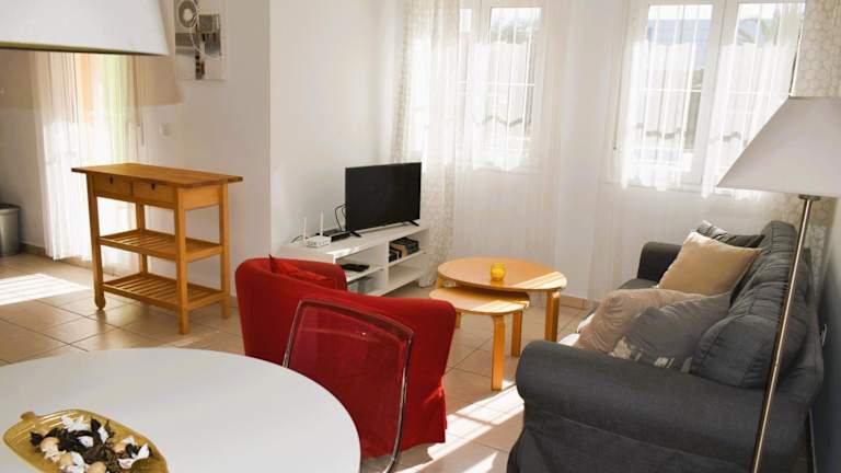 Die Ferienwohnung umfasst 2 Schlafzimmer, ein Badezimmer, Bettwäsche, Handtücher sowie einen TV mit Satellitenkanälen. Die voll ausgestattete Küche ermöglicht eine selbstständige Zubereitung der Mahlzeiten. Eine Terrasse mit Blick auf den Pool ist ebenfalls vorhanden.