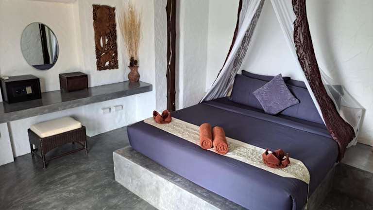 Die Anankhira Villas befinden sich in einer großartigen Lage, nur 300 m vom beliebten Strand Sairee entfernt. Dieser Strand bietet kristallklares Wasser und feinen Sand, ideal zum Entspannen und Sonnenbaden. Der Pier Mae Haad ist nur 5 Fahrminuten entfernt und bietet eine gute Anbindung an die umliegenden Inseln. In der Umgebung finden Sie auch verschiedene Restaurants, Bars und Geschäfte.