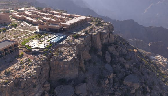 Das Anantara Al Jabal Al Akhdar Resort liegt 2.000 Meter über dem Meeresspiegel am geschwungenen Rand einer großen Schlucht und ist das höchste Luxusresort im Nahen Osten und eines der höchsten der Welt. Das Hotel liegt nur zwei Stunden vom internationalen Flughafen Muskat entfernt