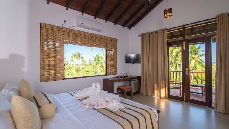 Die Zimmer im Ananya Beach Resort sind mit Klimaanlage, einem Sitzbereich und einem Flachbild-TV mit Satellitenkanälen ausgestattet. Jedes Zimmer verfügt über eine Küchenzeile, einen Essbereich, einen Safe sowie ein eigenes Badezimmer mit Dusche, kostenlosen Pflegeprodukten und einem Haartrockner. Einige Zimmer bieten Poolblick, und alle sind mit einem Balkon sowie Bettwäsche und Handtüchern versehen.