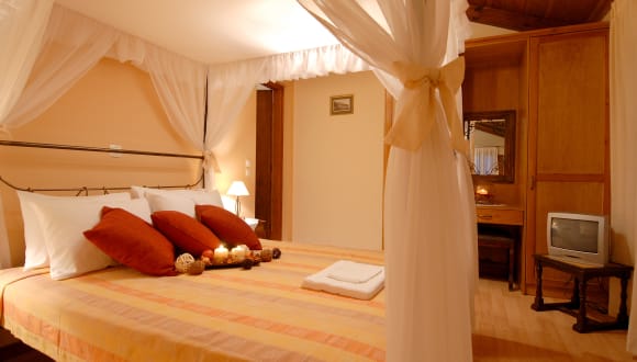 Anatoli Labreon Guesthouse - Agia Marina - Zakynthos Zante island - Zakynthos Holidays Greece The guesthouse is surrounded by well-kept gardens with fragrant flowers. The complex is built and furnished according to traditional Zakynthian architecture. It consists of 8 spacious rooms, 2 rooms suitable for 4 people, 2 rooms suitable for 3 people and 4 rooms that can accommodate 2 people. An extra bed can be added in the rooms that are suitable for 2 people upon request. All rooms are furnished and equipped with air conditioning, w.c., closet, tv, fridge, coffee machine, kettle, hair dryer, iron and Wi-Fi internet access. They also offer furnished balconies with amazing views of the island's lowland. In the traditionally decorated dinning/ breakfast room you can feast on delicious meals. You can also lie on the sunbeds by the pool and soak up some sun, while enjoying the summer atmosphere.