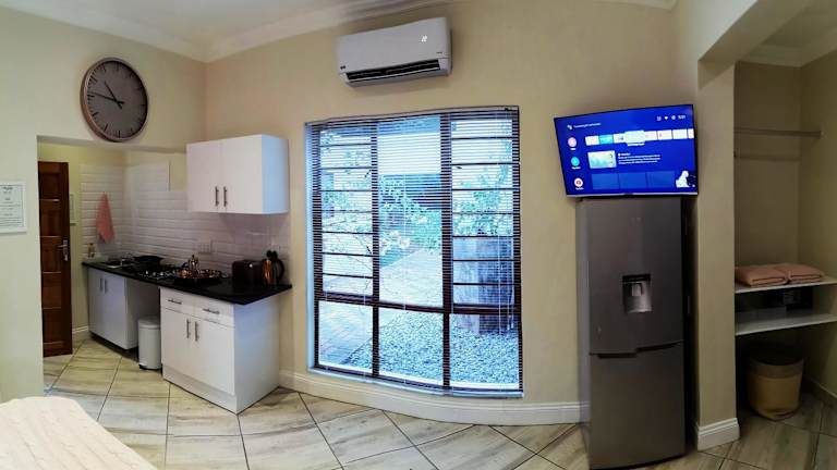 Die Andante Lodge befindet sich in Pretoria East und ist etwa 16 km vom Stadtzentrum von Pretoria entfernt. Die Lage ermöglicht es den Gästen, die Ruhe und Schönheit der Umgebung zu genießen, während sie dennoch in der Nähe der wichtigsten Sehenswürdigkeiten und Einrichtungen sind. Der Rietvlei Dam ist nur 6 km entfernt und bietet eine wunderschöne natürliche Umgebung zum Erkunden. Golfliebhaber werden die Nähe zu mehreren Golfclubs zu schätzen wissen. Das Einkaufszentrum Menlyn Park ist ebenfalls leicht zu erreichen und bietet eine Vielzahl von Einkaufs- und Unterhaltungsmöglichkeiten. Der internationale Flughafen O.R. Tambo ist etwa 32 km entfernt und bietet bequeme Anreisemöglichkeiten für internationale Gäste.