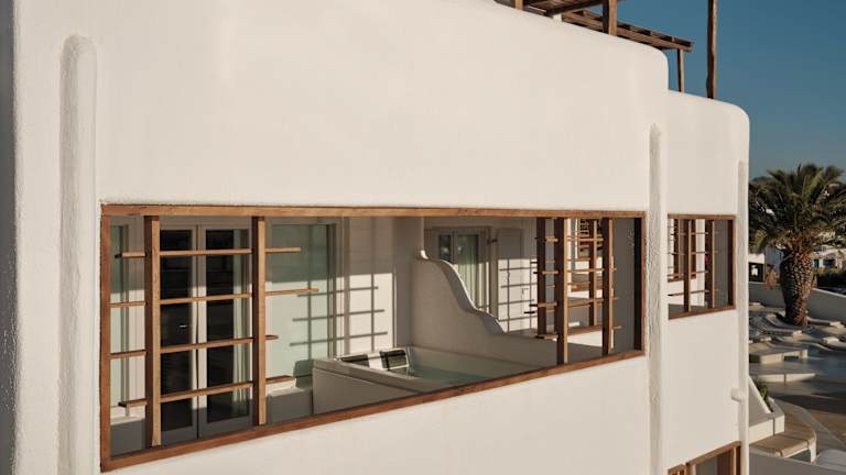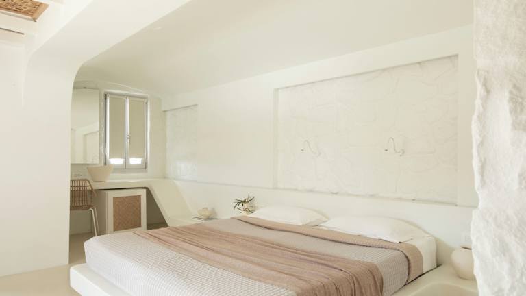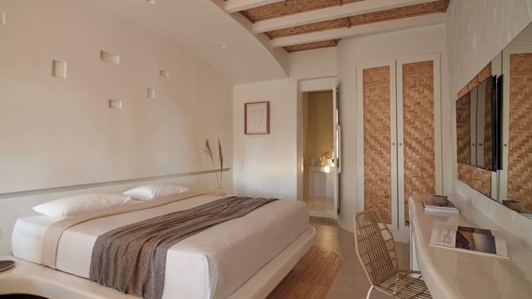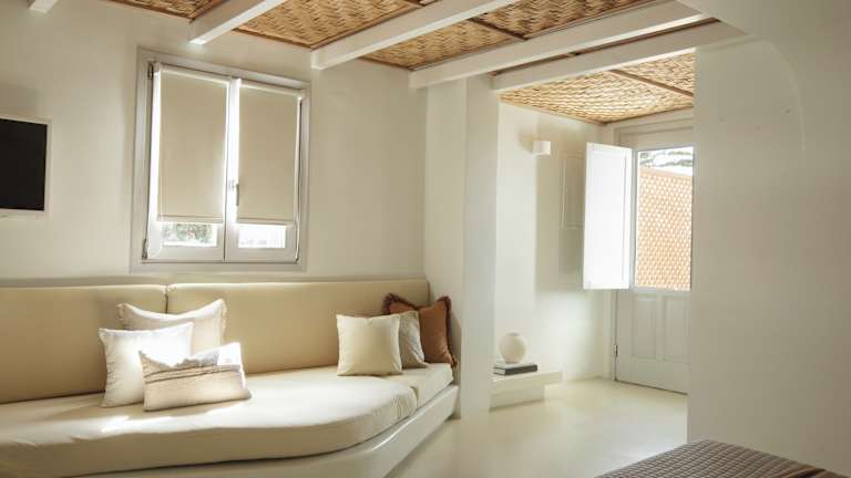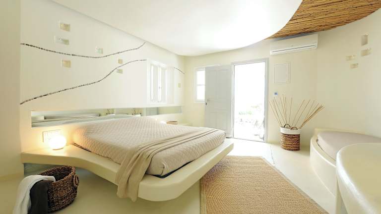 Die Zimmer im Andronikos Hotel sind geräumig und stilvoll eingerichtet. Sie verfügen über ein großes Bett, eine Minibar und kostenfreies WLAN. Einige Zimmer bieten auch einen Whirlpool und einen atemberaubenden Blick auf die Insel und das Meer.