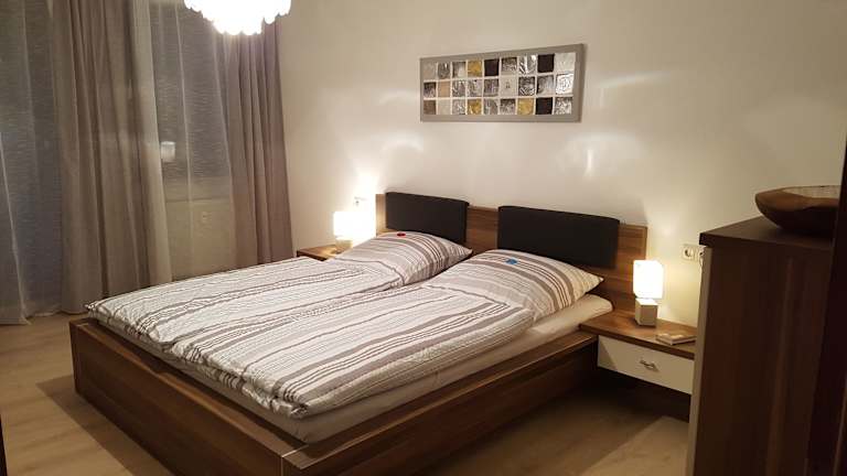 Die Ferienwohnung bietet Platz in zwei Schlafzimmern und einem Wohnzimmer. Sie ist ausgestattet mit einer voll ausgestatteten Küche, die einen Kühlschrank und eine Kaffeemaschine beinhaltet. Ein Badezimmer mit Dusche und kostenlosen Pflegeprodukten ist ebenfalls vorhanden. Handtücher und Bettwäsche werden bereitgestellt.