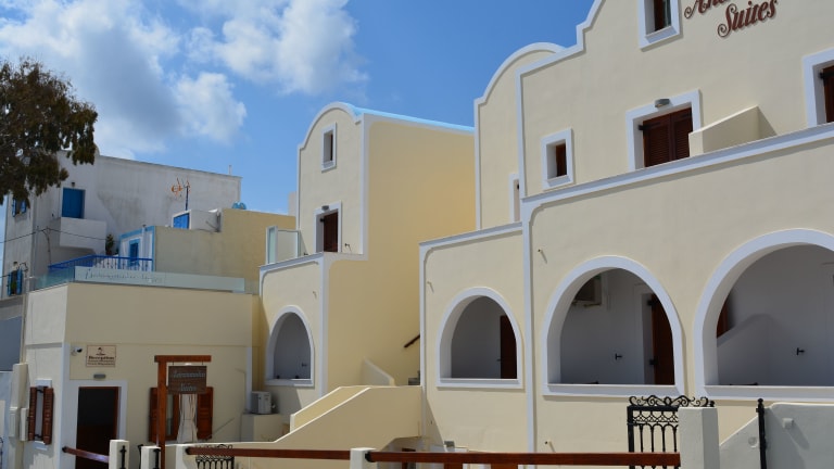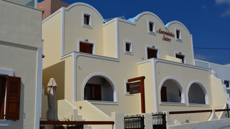Die Anemomilos Suites liegen nur 15 Gehminuten vom Zentrum von Fira entfernt und bieten Ihnen eine ideale Lage, um die charmante Stadt Santorins zu erkunden. Von den Balkonen der Suiten aus können Sie die atemberaubende Aussicht auf die Ägäis und die umliegende Landschaft genießen. Die Nähe zum internationalen Flughafen Santorin macht die Anreise zum Hotel besonders bequem.