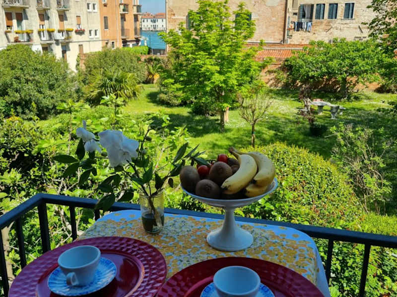Der Garten des Angela di Venezia House lädt zum Entspannen und Verweilen ein. Hier können Sie sich in einer ruhigen Umgebung erholen und die Atmosphäre von Venedig genießen. Nutzen Sie die Gelegenheit, um ein Buch zu lesen oder einfach nur die Sonne zu genießen.