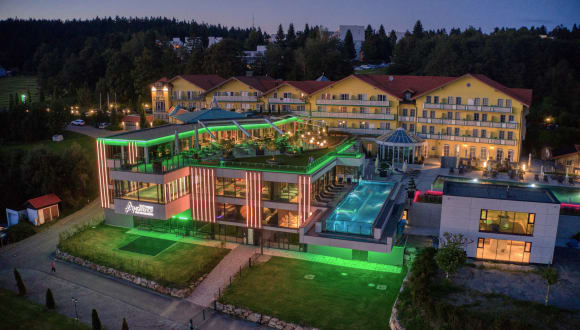 Das Angerhof****s Sport- und Wellnesshotel in Sankt Englmar liegt in einer der beliebtesten Urlaubsregionen Bayerns, im Naturpark Bayerischer Wald. Sein neues WaldSpa mit unendlich viel Platz, Ideenreichtum und Raffinesse, um Körper, Geist und Seele zu verwöhnen, erfüllt Genussmomente mit der Kraft des Bayerischen Waldes. Da kann die Seele herrlich baumeln. Da ist Zeit für die Liebsten. Da wird Me-Time großgeschrieben. Wer im Angerhof in den Sky-Infinitypool eintaucht, kann seinen Blick nicht mehr von der atemberaubenden Kulisse über das Donautal bis hin zur Alpenkette lösen. Die große Sky-Terrasse und eine Panorama-Eventsauna zum Staunen, ein doppelstöckiges Saunahaus, Coolness in der Schneekabine, wohltuende WaldSpa-Ruheräume, ein traumhafter, großer Naturpool und noch vieles mehr lassen den Begriff „High-End-Spa“ zweifellos zu. Und tschüss To Do-Liste Sich selbst Gutes zu gönnen, ist nie verkehrt, sich ein paar Tage der Romantik zu widmen, noch viel weniger. Ob LichterWald, KräuterDom oder Auqadrale – die Schätze des Bayerischen Waldes übernehmen in dem neuen WaldSpa die Hauptrolle auf der Wellnessbühne. Sich einlassen, staunen und spüren sind erwünscht. Die wohltuende Wirkung kann nur jeder selbst erleben. Ein „Ausflug“ in den LichterWald kitzelt die Sinne. Auf der wohlig warmen 4-Senses Lounge Liege dringen entspannende Klänge des Waldes an das Ohr. Leichte Vibrationen verstärken die Wahrnehmung, während entsprechende Lichtstimmungen das Gemüt erhellen. Der herrliche Duft des Waldes streift um die Nase, die Gedanken entfliehen dem Alltag und machen sich auf den Weg in den Wald. Im KräuterDom erfahren die Freunde von Dampfbädern neue Eindrücke. Sie nehmen gemütlich auf ergonomisch geformten Steinliegen Platz und lassen unterschiedliche Kräuterdüfte und den warmen, gesunden Dampf auf sich wirken. Wer dann noch in die Aquadrale kommt, der wird Ohren- und Augenzeuge des wohl ersten Poolkinos. Wenn rund um den 20-Meter-Indoor-Pool die Natur auf der Leinwand vorbeizieht und ein klassisches Konzert ertönt, dann wähnt sich so mancher im siebten Himmel. Mit privater Wohlfühlatmosphäre umgarnen die Beautyabteilung und der Wald Massage-Tempel ihre Besucher. Geschulte Hände verwöhnen mit edlen Cremes, wundervollen Masken und Ölen. Jeder ist im Angerhof zu seiner individuellen Lieblings-Wellnessreise eingeladen, zu Bädern und Kosmetik-Anwendungen mit Produkten ausgesuchter Top-Marken.