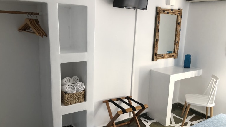 Die traditionell gebauten Angie’s Studios sind klimatisierte Unterkünfte mit gepflasterten Böden, die auf einen eigenen Balkon führen. Die Studios sind in blauen und weißen Farbtönen gestaltet, orientieren sich am regionalen Stil und sind von Bougainvilleen umgeben. WLAN steht in allen Bereichen kostenfrei zur Verfügung. Tiere sind nicht gestattet und es wird darauf hingewiesen, dass Junggesellen-/Junggesellinnenabschiede nicht erlaubt sind.
