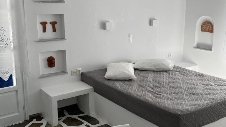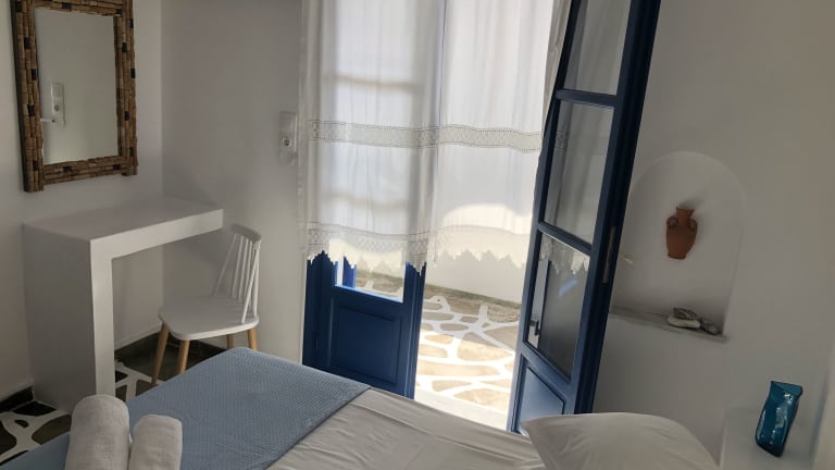 Angie's Studios befindet sich 150 m vom Sandstrand und 500 m vom Hafen von Parikia. In der Umgebung befinden sich Tavernen, Cafés und ein Supermarkt in einem Umkreis von 100 m. Die nächste Bushaltestelle ist 300 m entfernt und der Flughafen Paros ist 7 km entfernt.